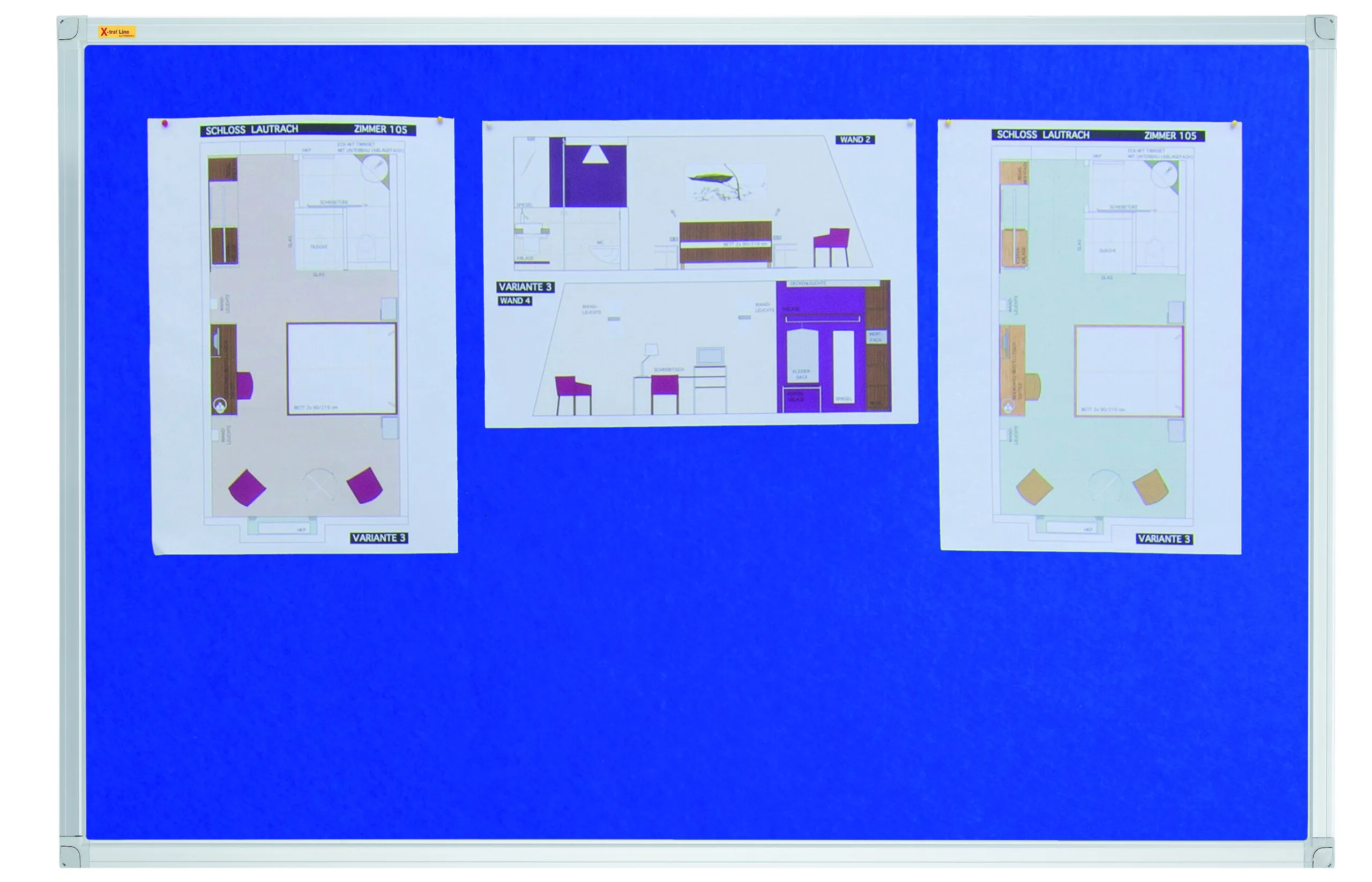 • Felt Notice Boards X-tra!Line ® • Economic felt notice boards for any office • Silver anodised aluminium frame • Includes mounting kit • Can be displayed portrait or landscape • Comes in Sizes: 60 x 45cm, 90 x 60cm, 120 x 90cm, 120 x 120cm, 150 x 120cm, 180 x 120cm, and 240 x 120cm