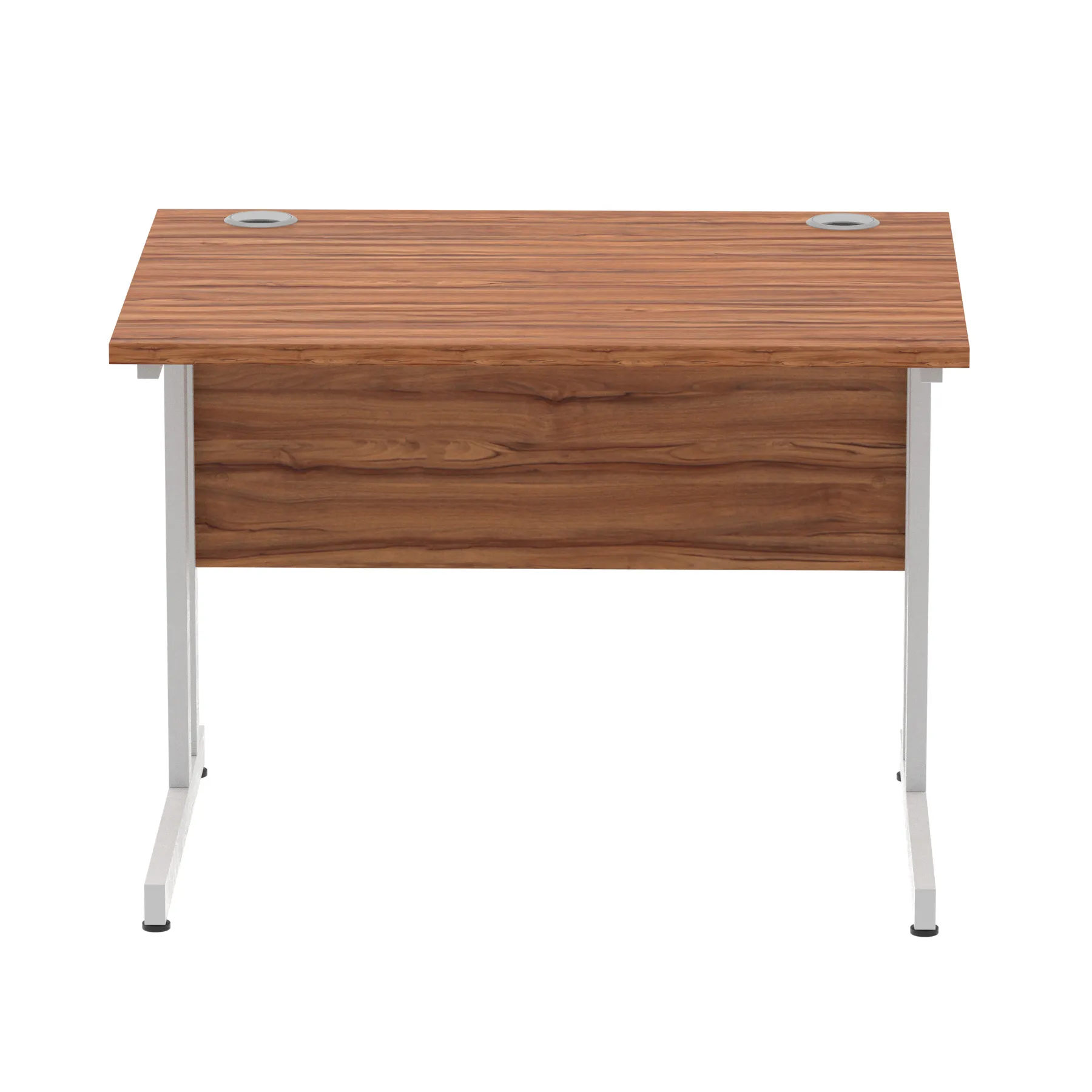 Impulse contract desk | 25mm tops | Heat resistant melamine finish | 18mm modesty panels | 2mm protective abs edging | Double strut legs | 2 cable ports | Height adjustable feet | Steel to steel fixings | 2 modesty panels slots| Deep set modesty panel (5″) allows for compatibility of most screen clamp fittings | Weight Capacity 135Kg