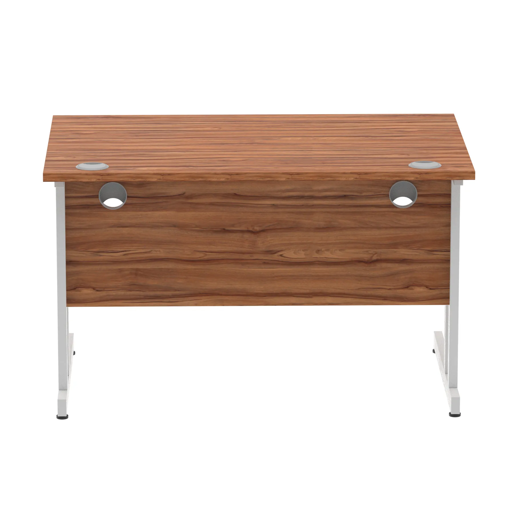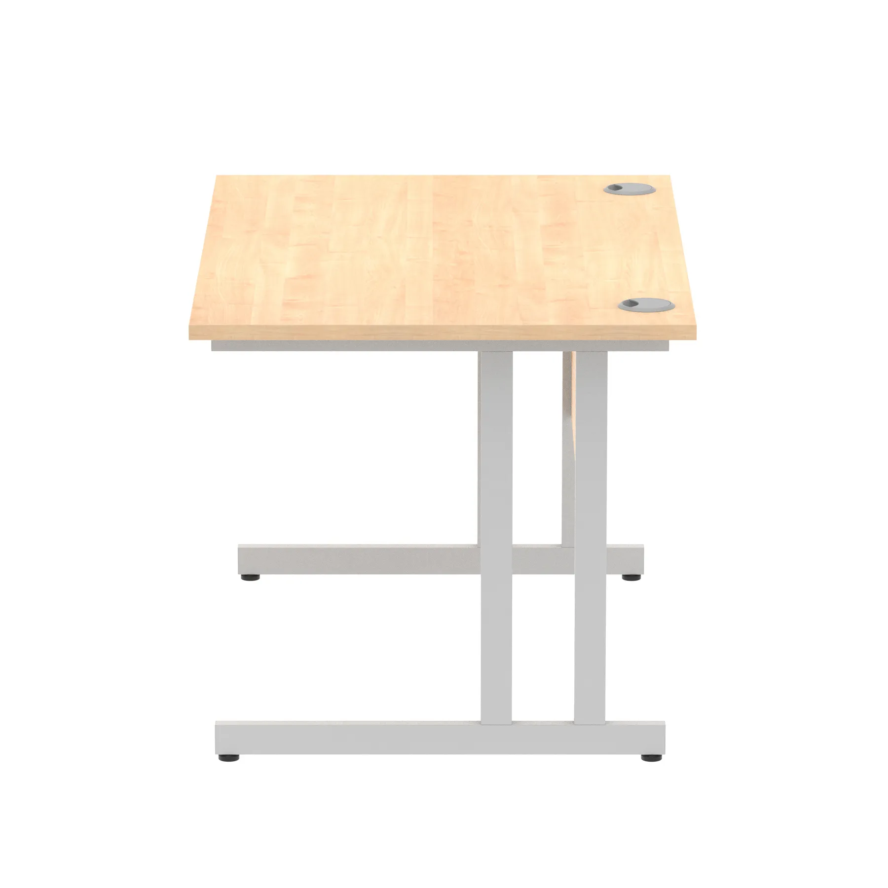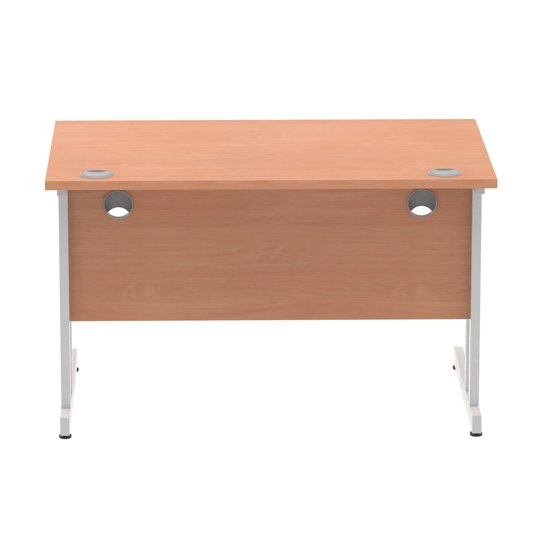 Impulse contract desk | 25mm tops | Heat resistant melamine finish | 18mm modesty panels | 2mm protective abs edging | Silver coated double strut legs | 2 cable ports | Height adjustable feet | Steel to steel fixings | 2 modesty panels slots| Deep set modesty panel (5″) allows for compatibility of most screen clamp fittings | Weight Capacity 135Kg