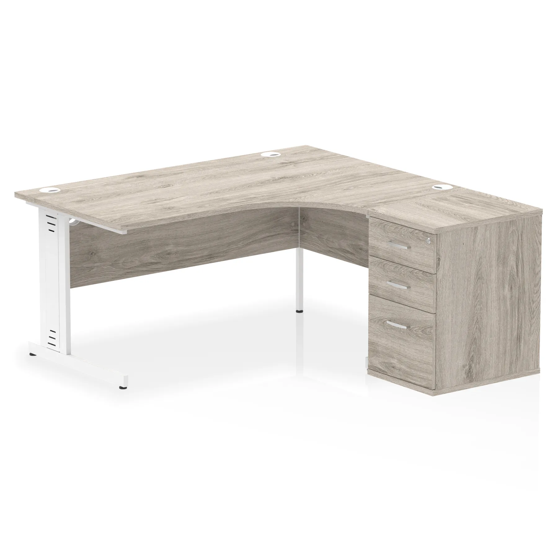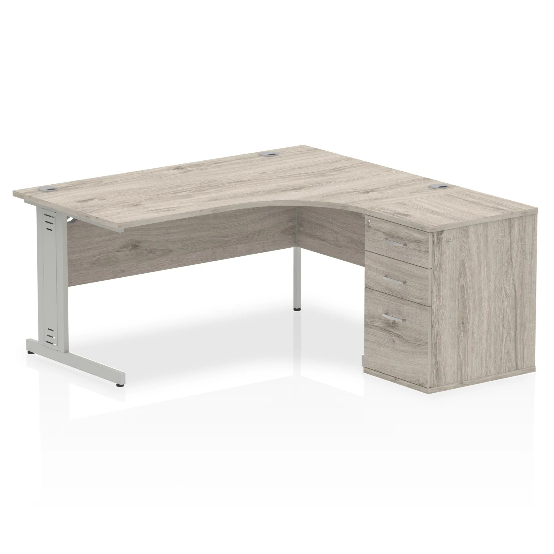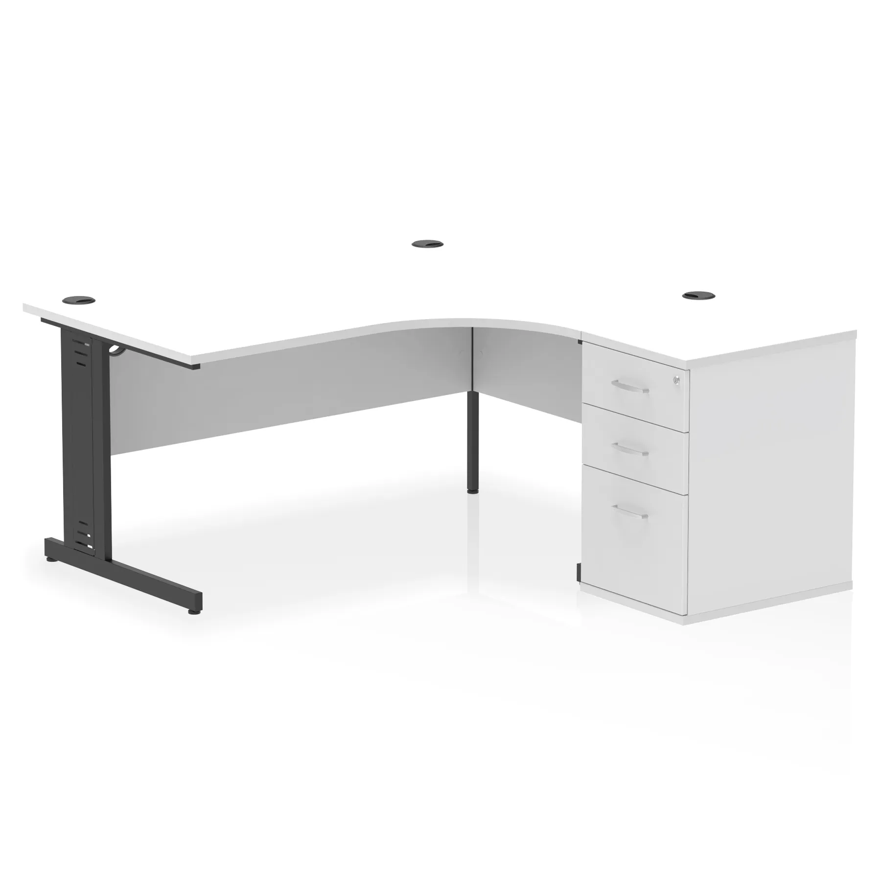 • Impulse contract workstation • 25mm tops • Desk and pedestal combined • Heat resistant melamine finish • 18mm modesty panel • 2mm protective abs edging • Double strut legs • Multiple cable ports • Height adjustable feet • Steel to steel fixings • Modesty panel slots wire slots • Deep set modesty panel (5″) allows for compatibility of most screen clamp fittings