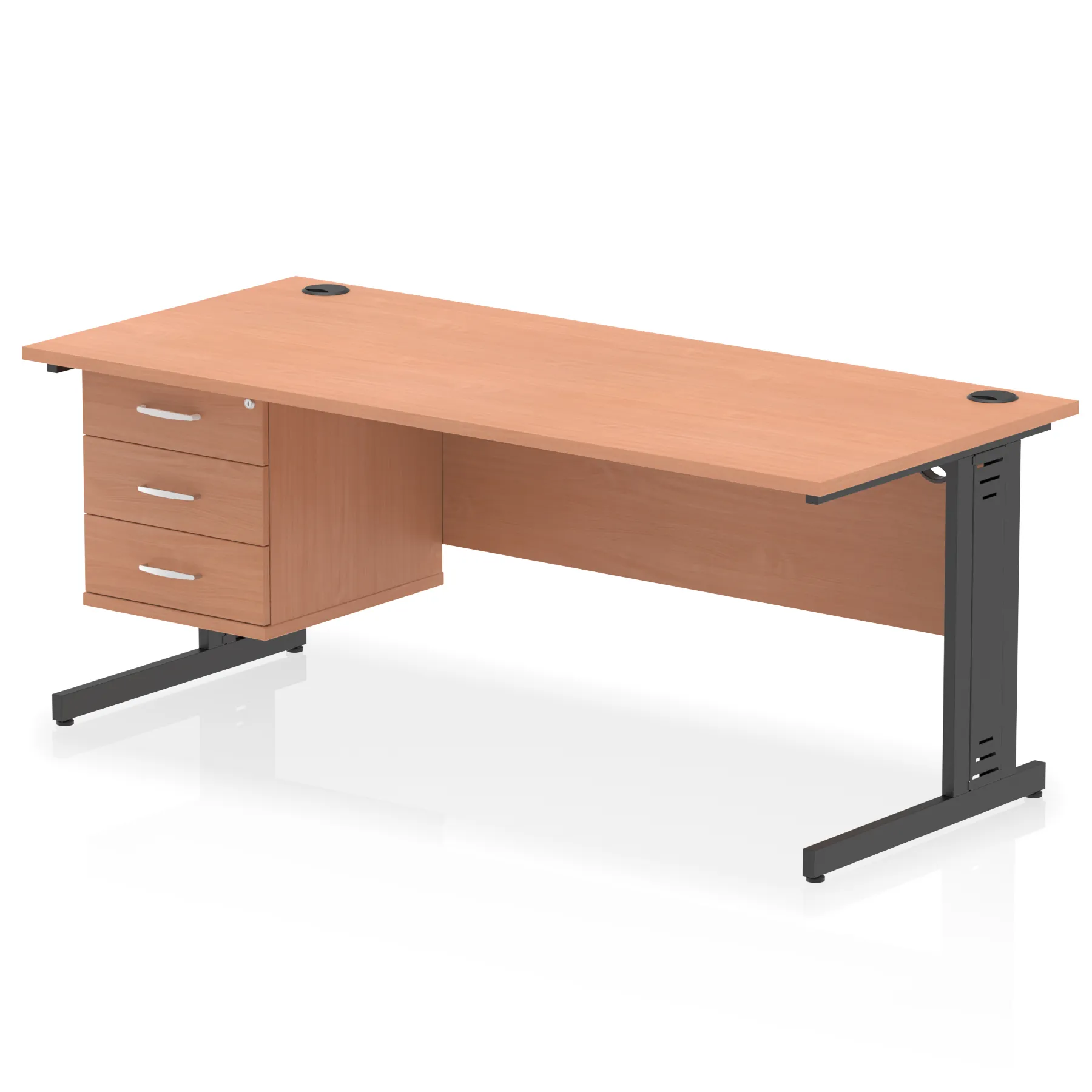 Impulse 1800mm Cable Managed Straight Desk With Single Fixed Pedestal
