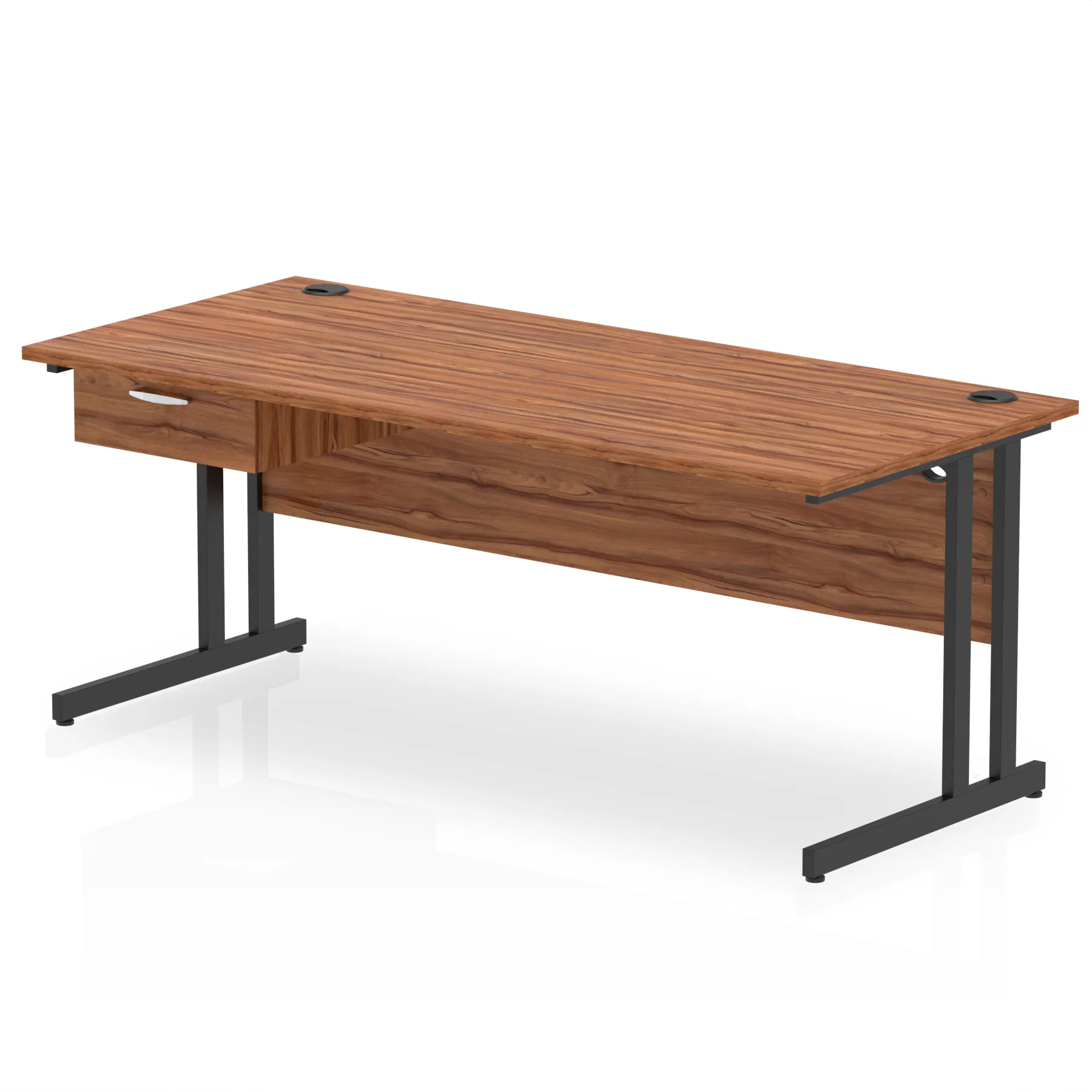 Impulse Cantilever Straight Desk Black Frame With Single One Drawer Fixed Pedestal