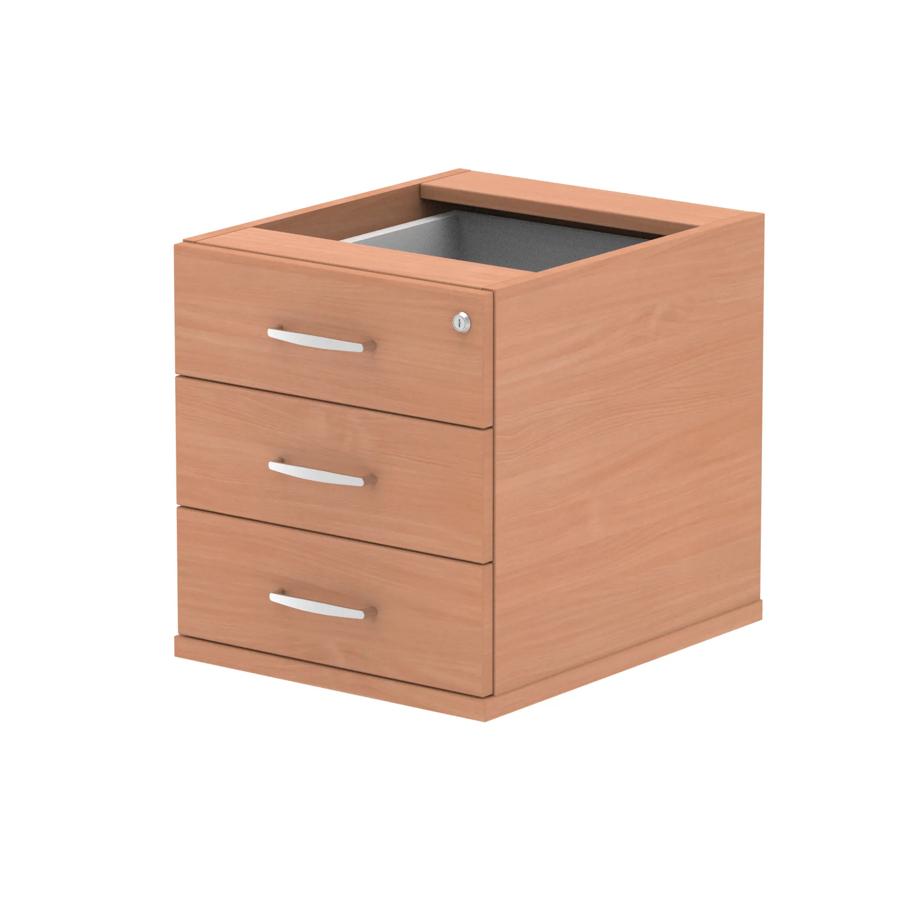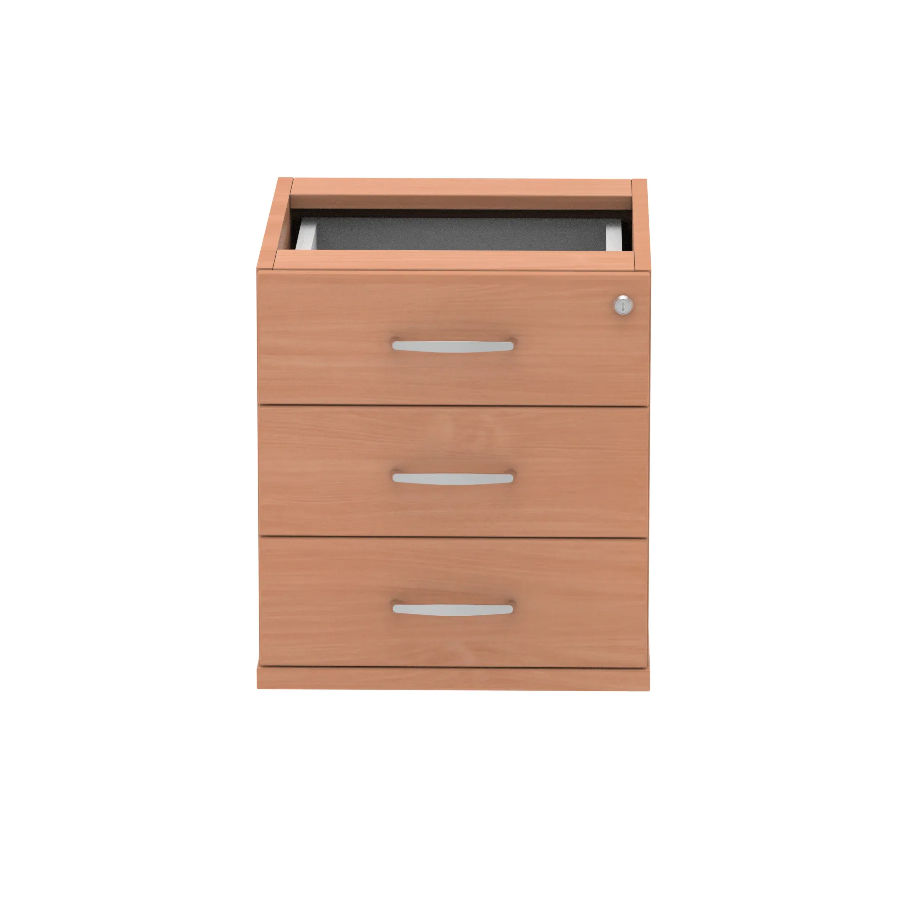 Impulse fixed pedestal | 25mm top | Full 18mm back board | 2mm abs protective edges | Steel handles | Solid box drawer construction | Fits A4 or foolscap filing (Filing rails only available on the 2 drawer variant) | Steel to steel fixings | Lockable drawers | Heat resistant Beech melamine finish