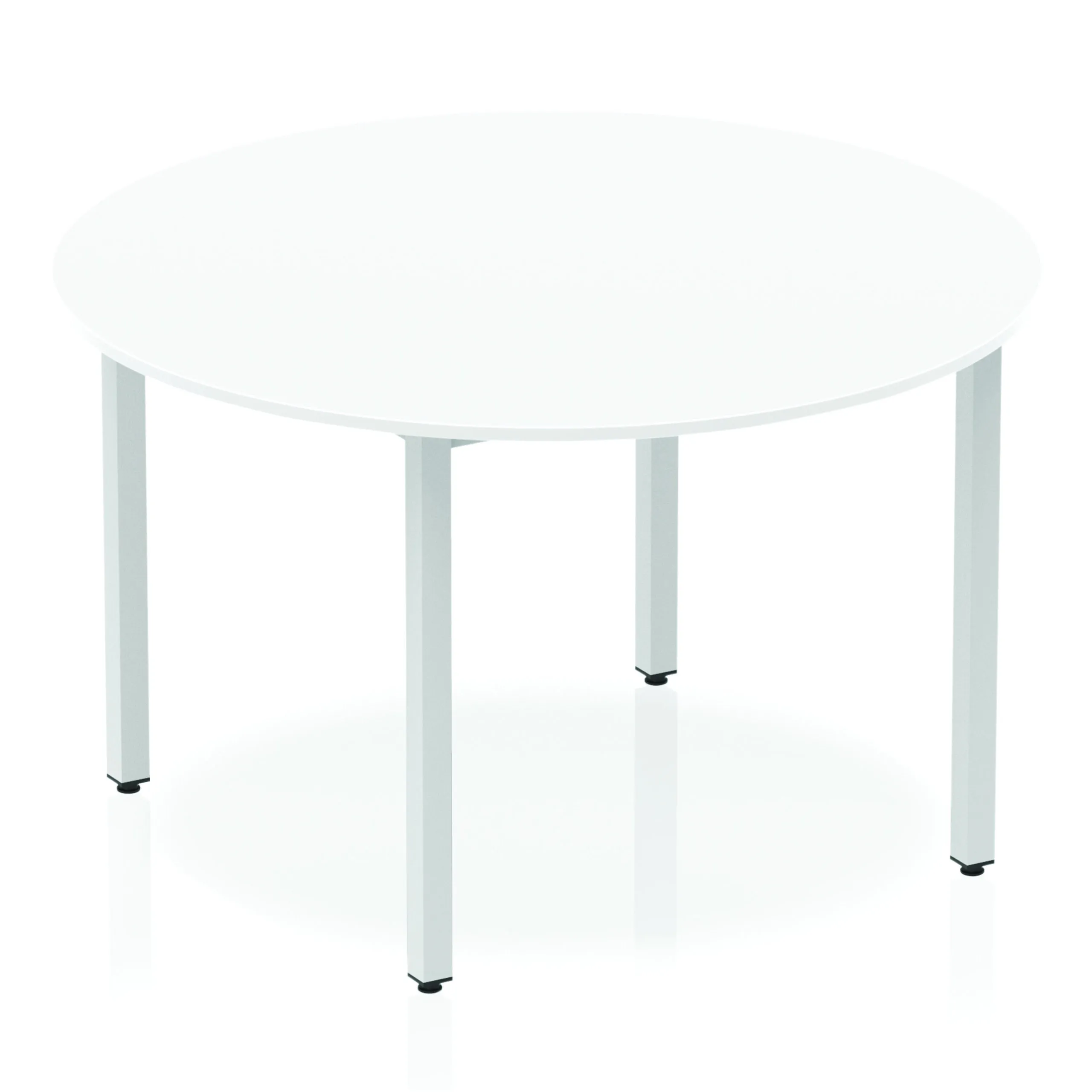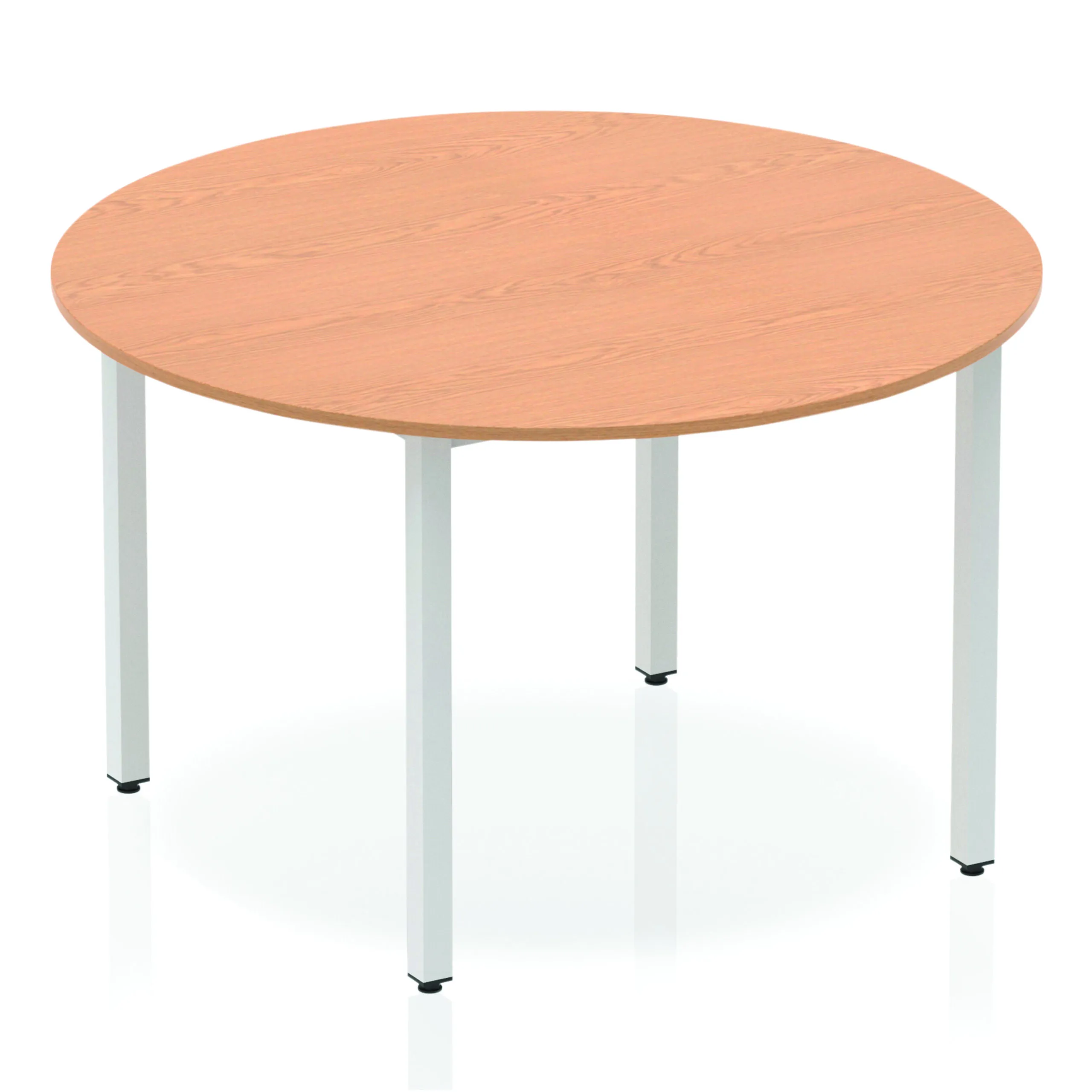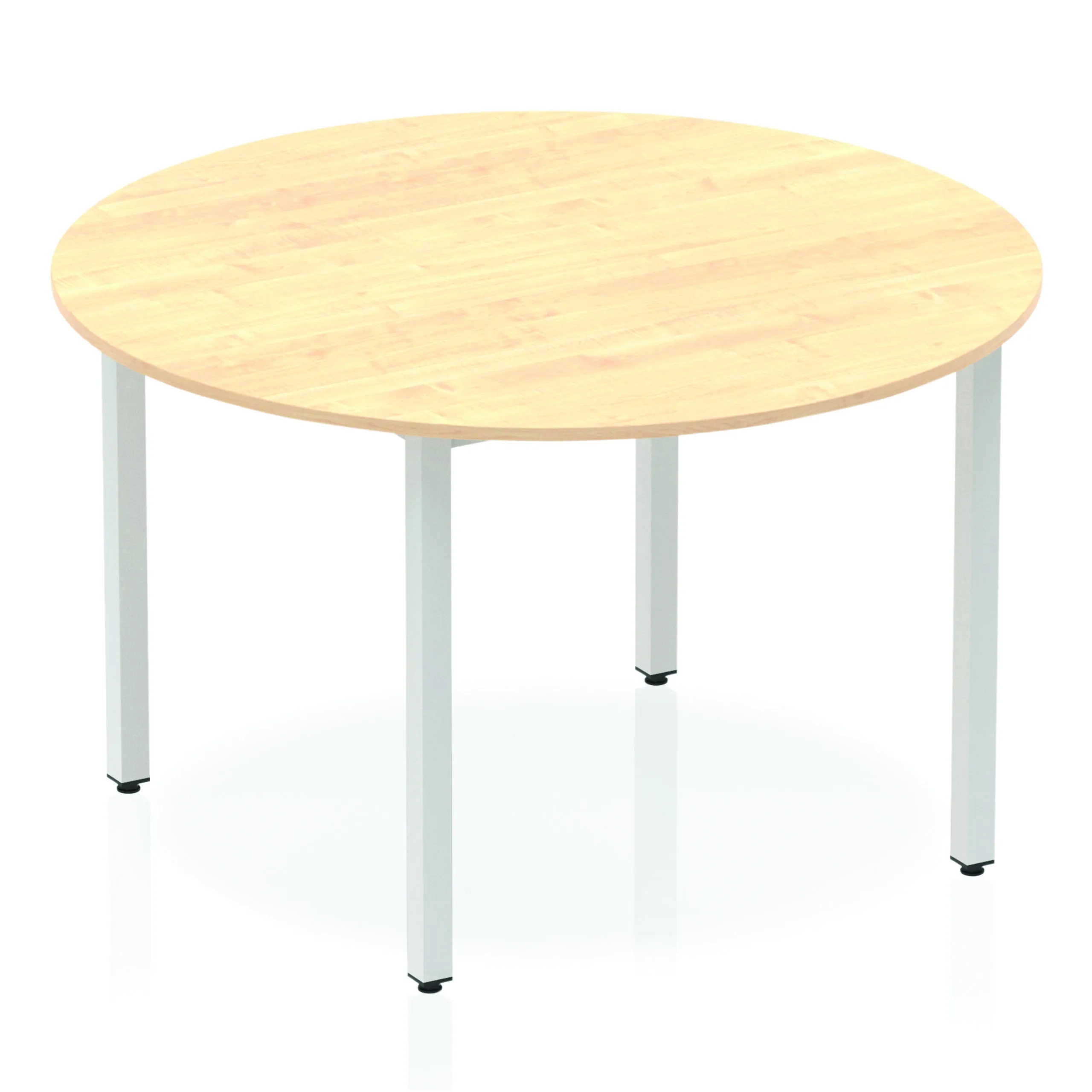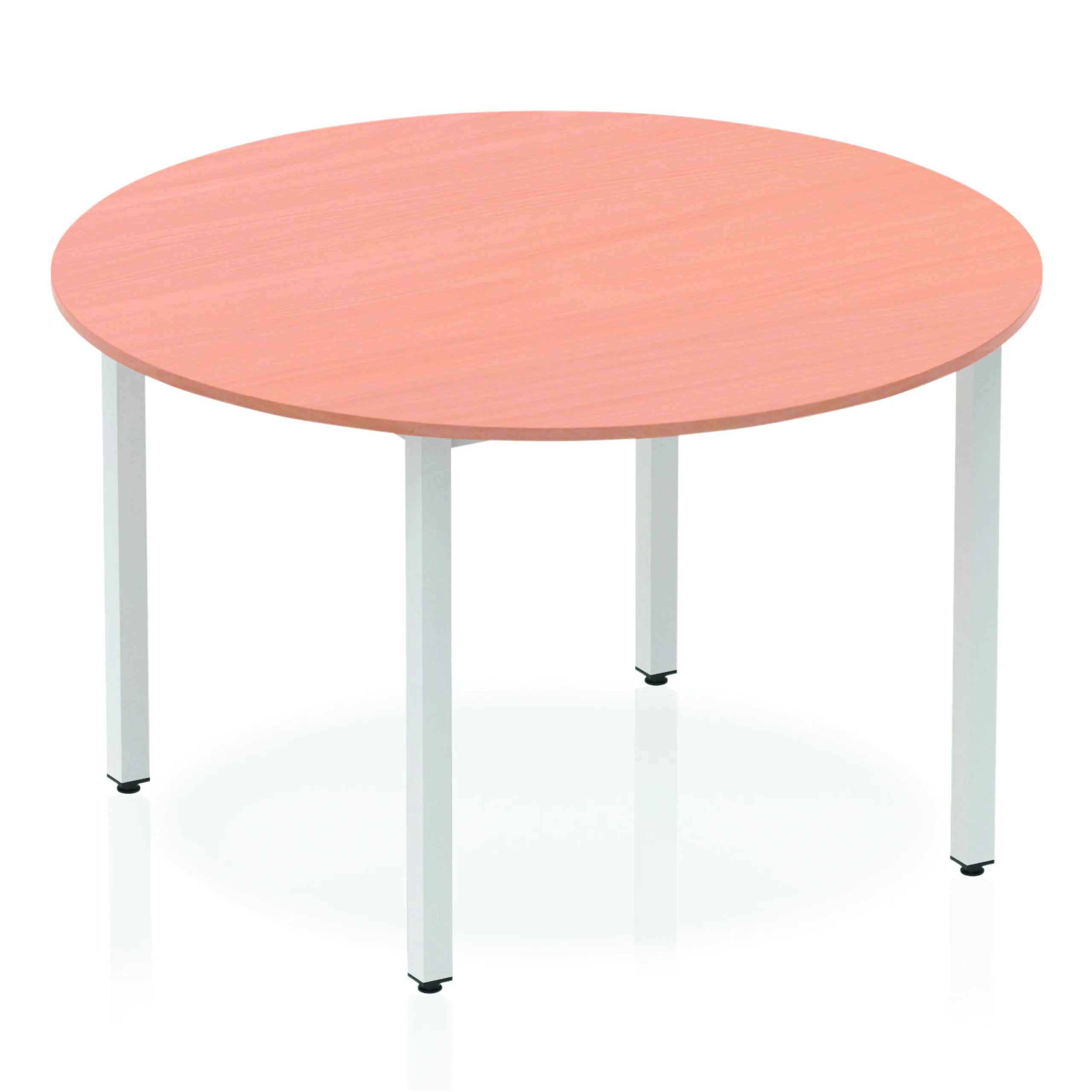 Impulse freestanding meeting table • Classic circular shape • Provides excellent team working environment • 18mm thick top • Attractive silver coated box frame leg • 2mm abs protective edging • Heat resistant beech melamine finish • Weight Capacity: 100Kg