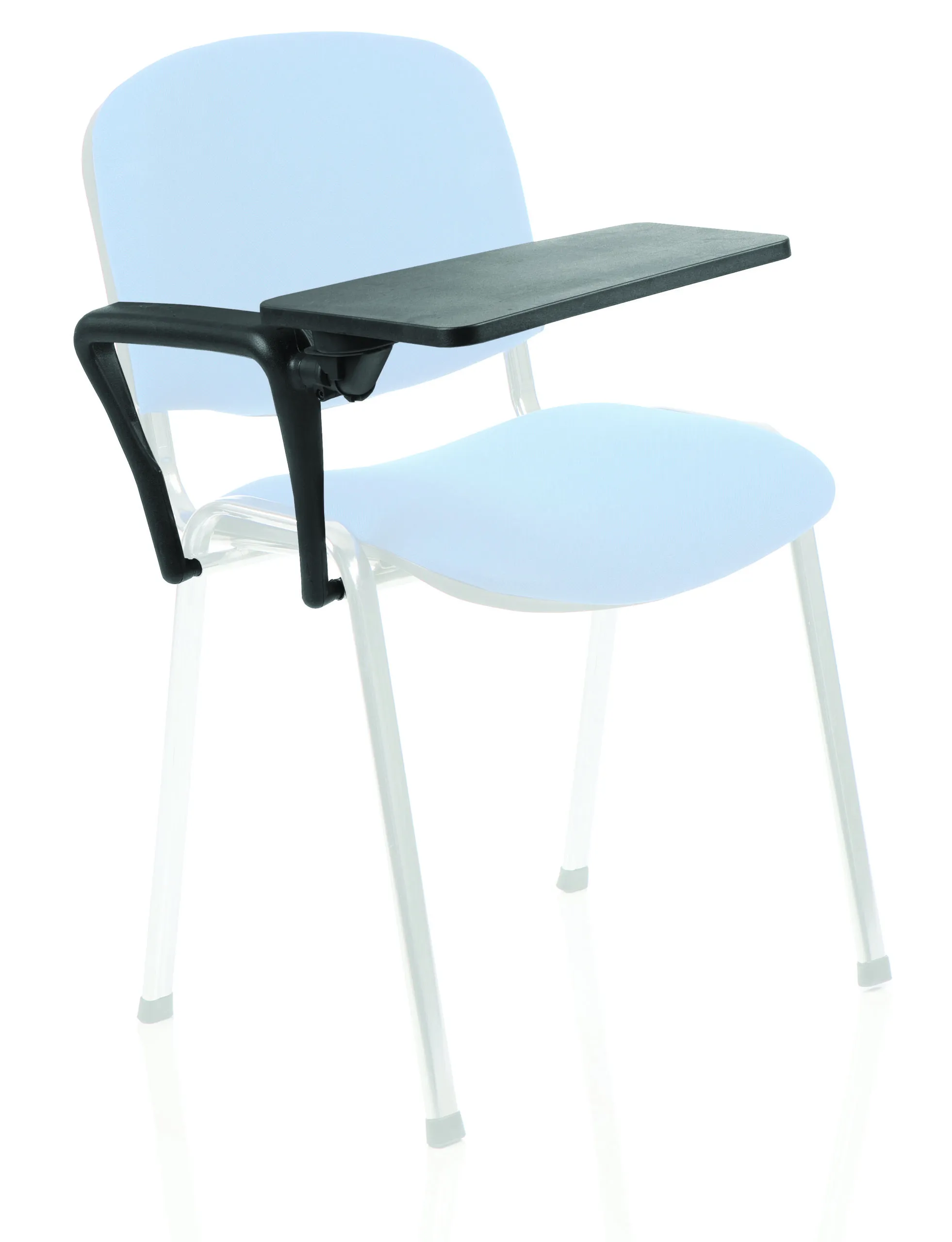A foldaway writing tablet with a wipe clean polymer surface that is easily fitted to the ISO arm.