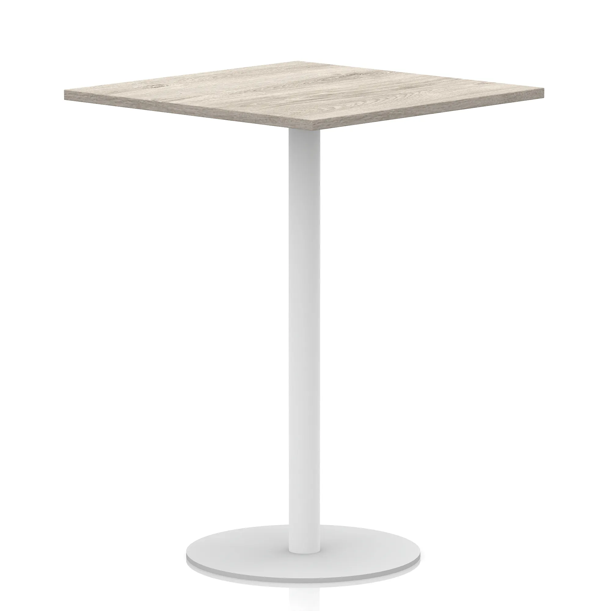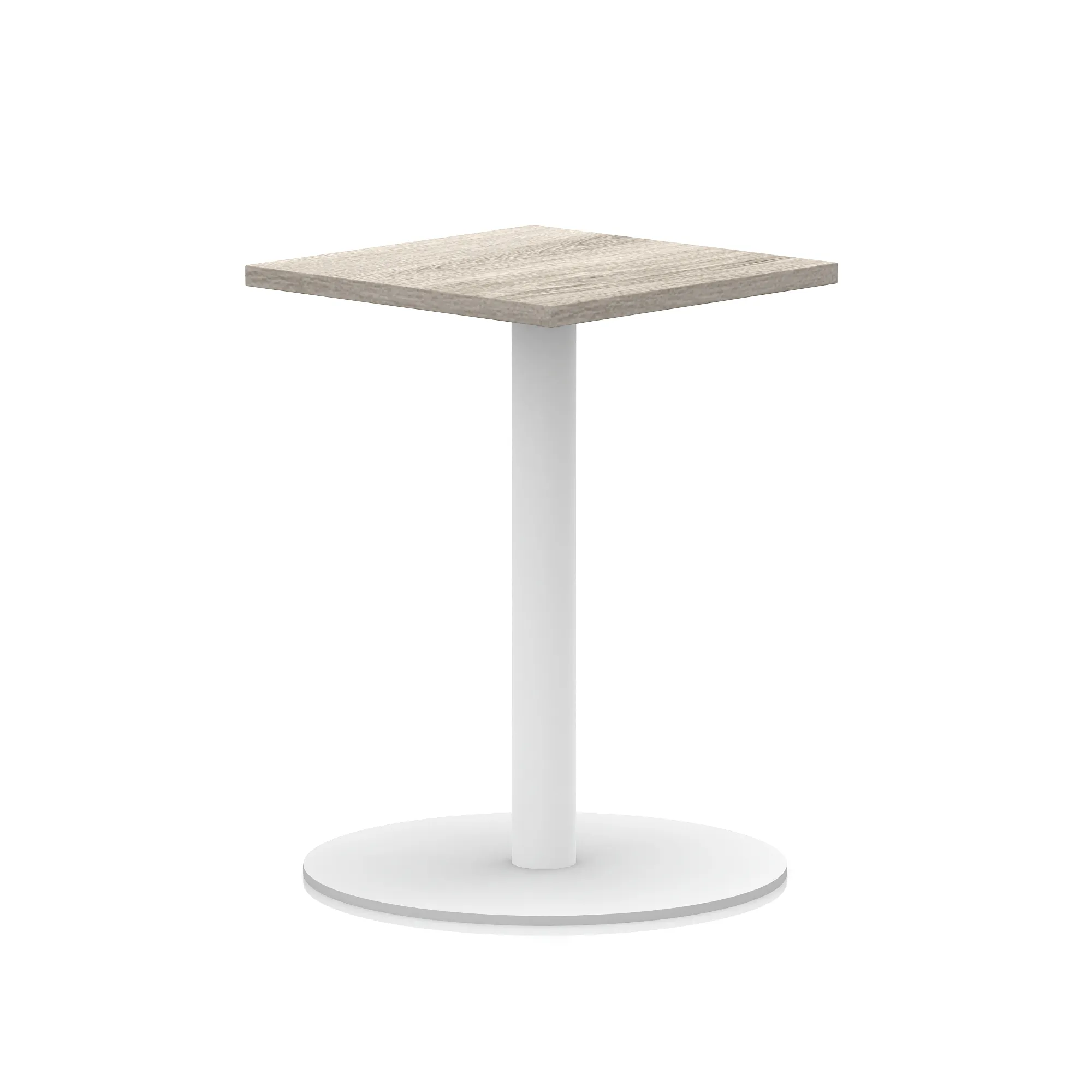 25mm thick desk top profile | Brushed stainless steel effect circular base (580mm diameter) | Brushed stainless steel pillars (76mm diameter) | Weighted base provides stability | Two part bolted frame system