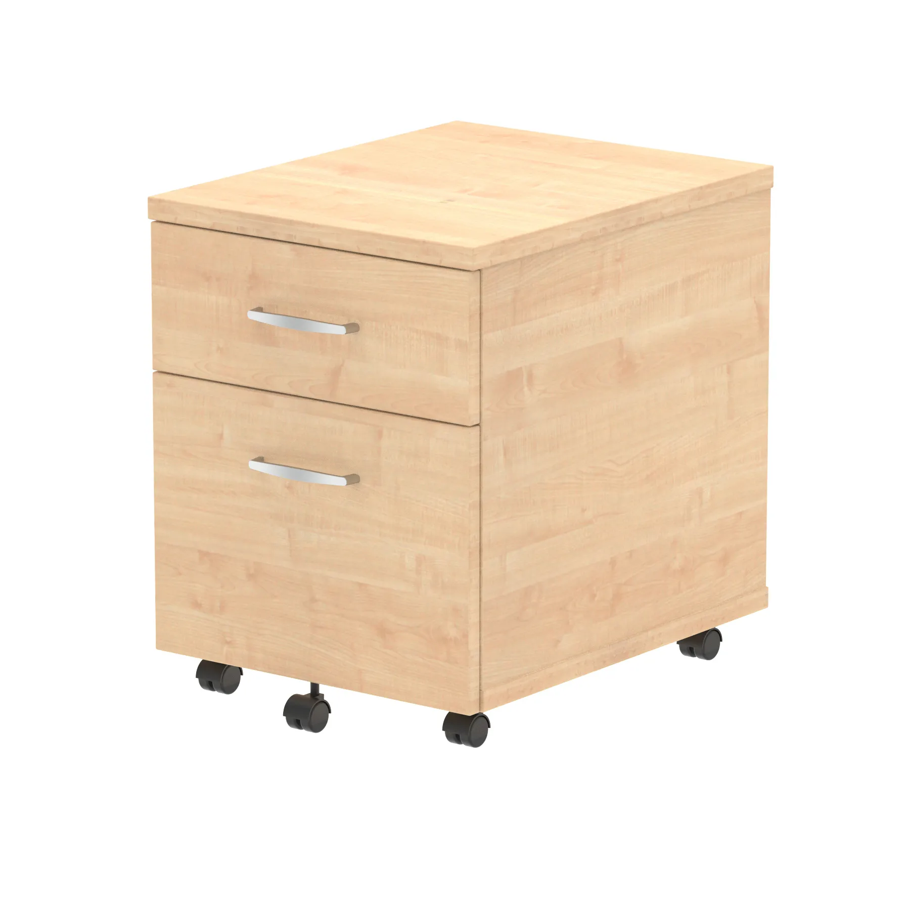 Impulse mobile pedestal | 25mm top | Full 18mm back board | 2mm abs protective edges | Steel handles | Solid box drawer construction | Fits A4 filing (Filing rails only available on the 2 drawer variant) | Smooth running castors for mobility | Steel to steel fixings | Lockable drawers | Heat resistant beech melamine finish
